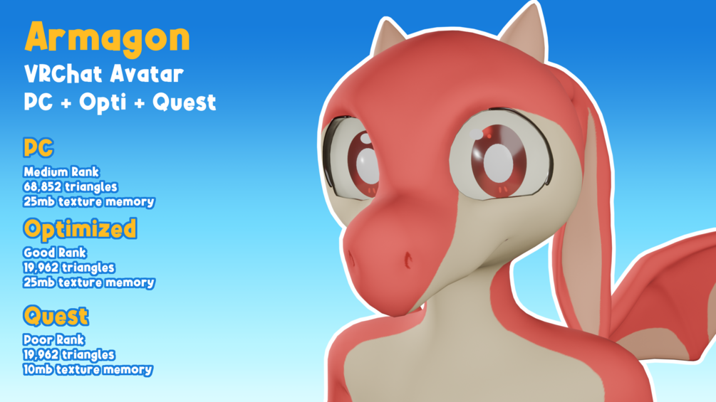 An armadillo dragon made from scratch. Full body tracking has not been tested. No facial tracking.